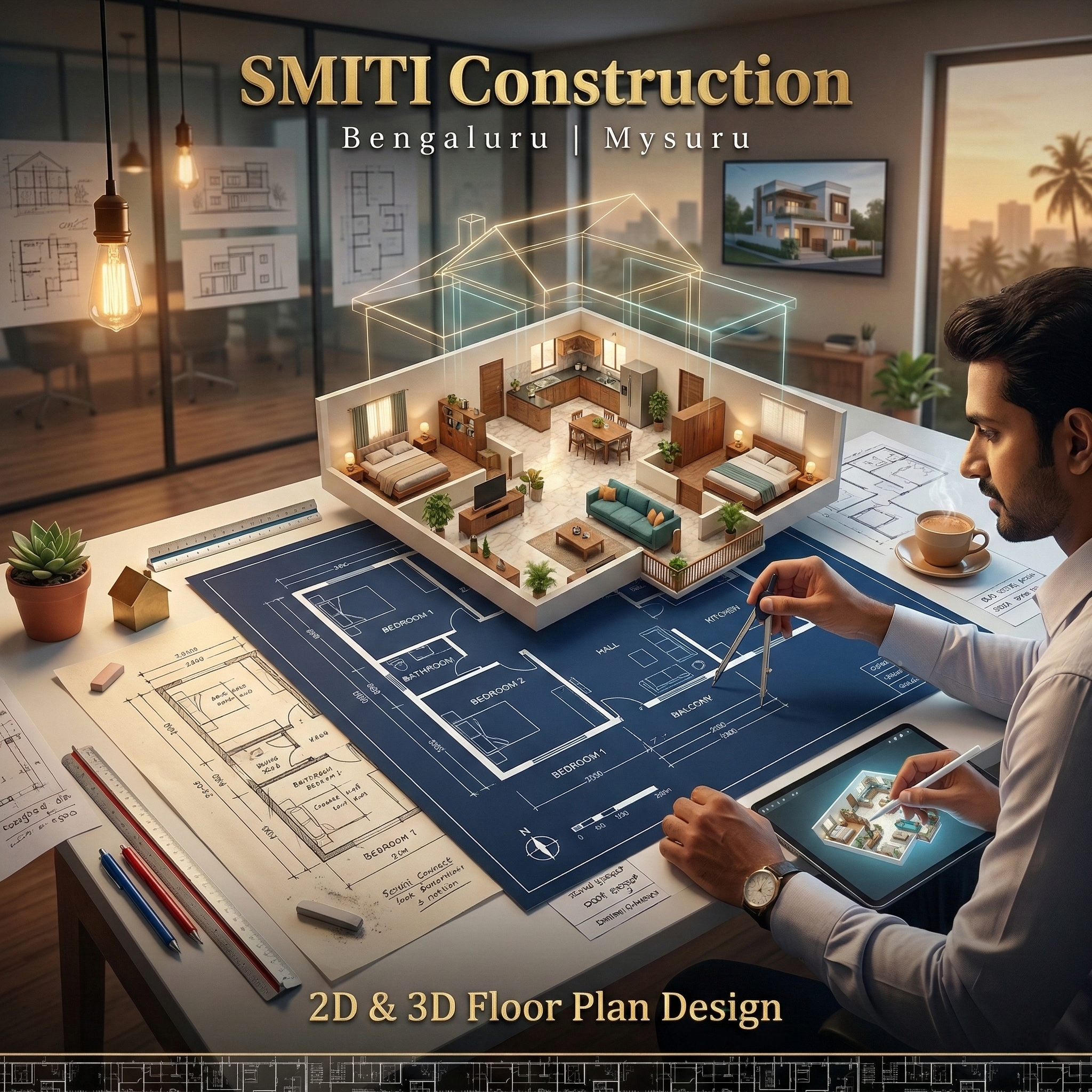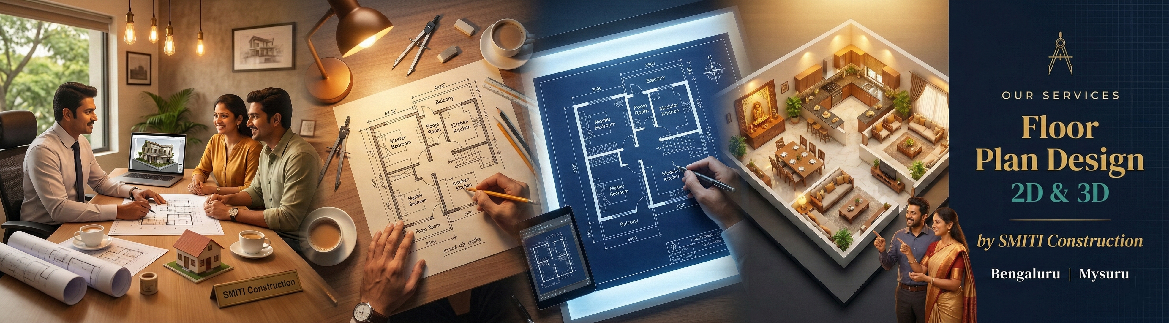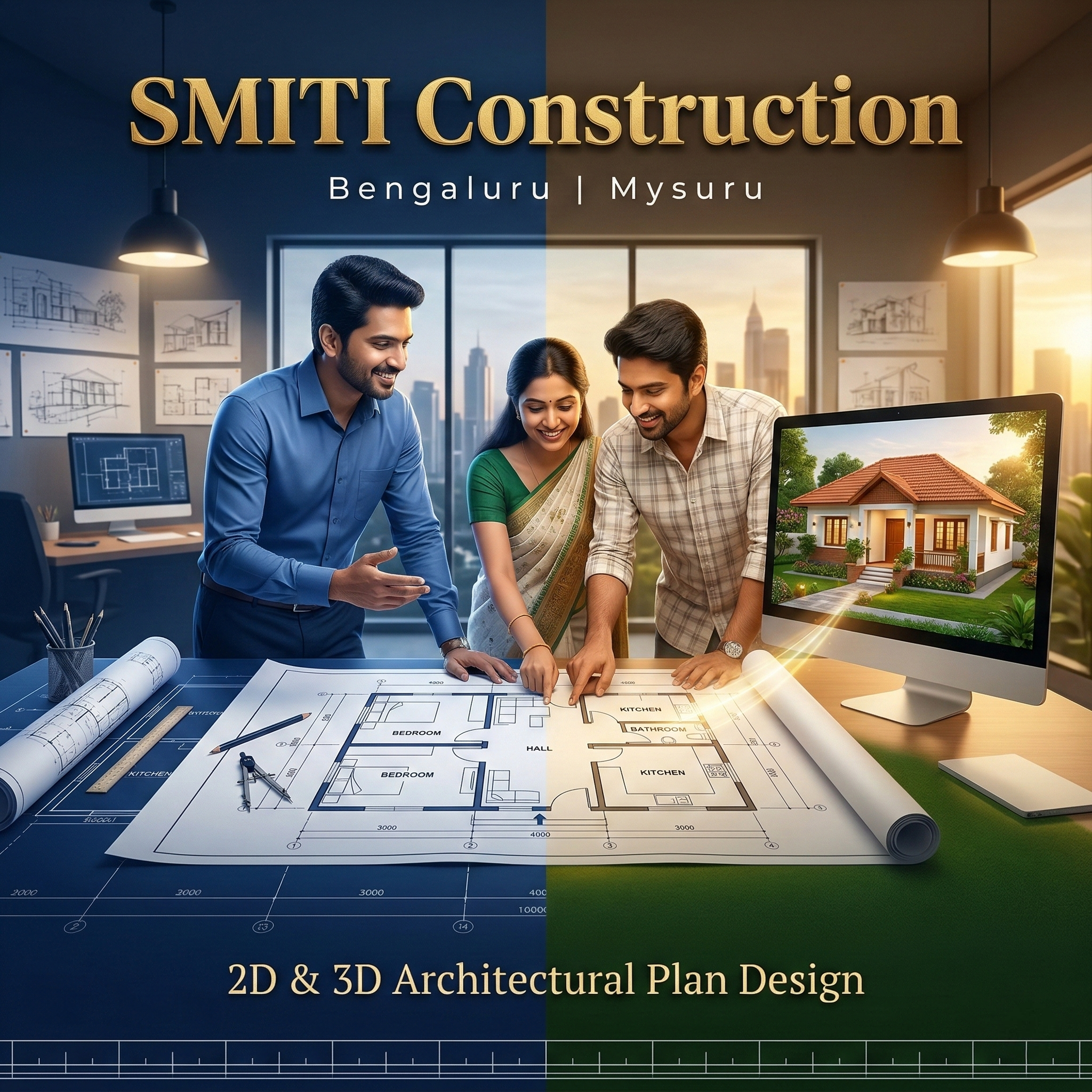 We primarily serve Bengaluru (Bangalore), Mysuru (Mysore), and nearby areas in Karnataka for house construction, commercial building work, architectural design, structural drawings, and interior projects.