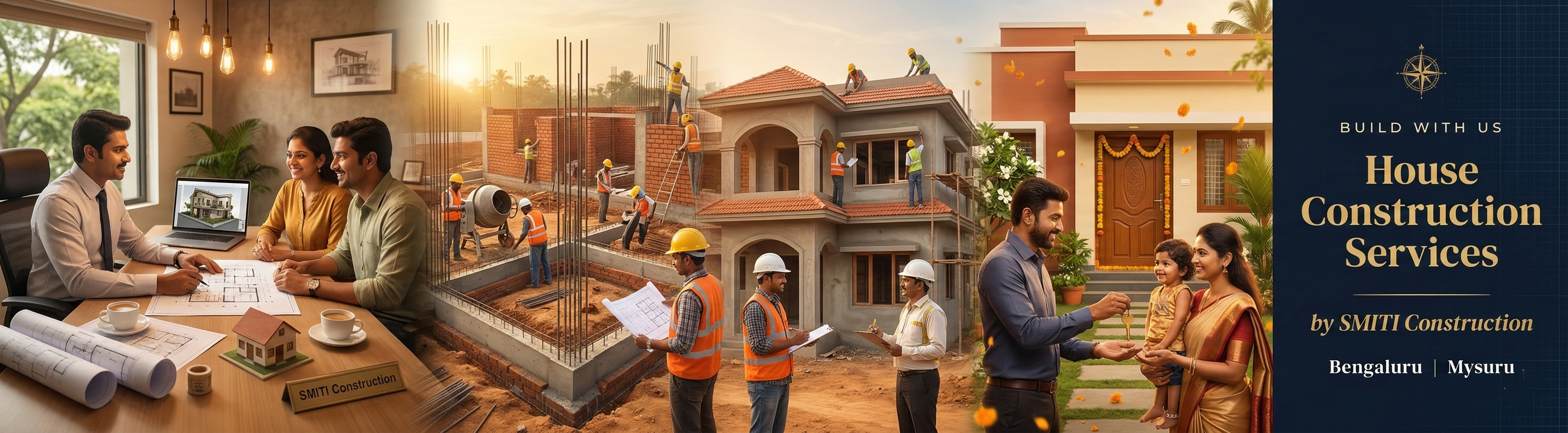 V1 Builders is a building & home construction company in Bangalore with 15 years of experience. One platform for construction and interior design — from planning and approvals to on-site execution and housewarming.